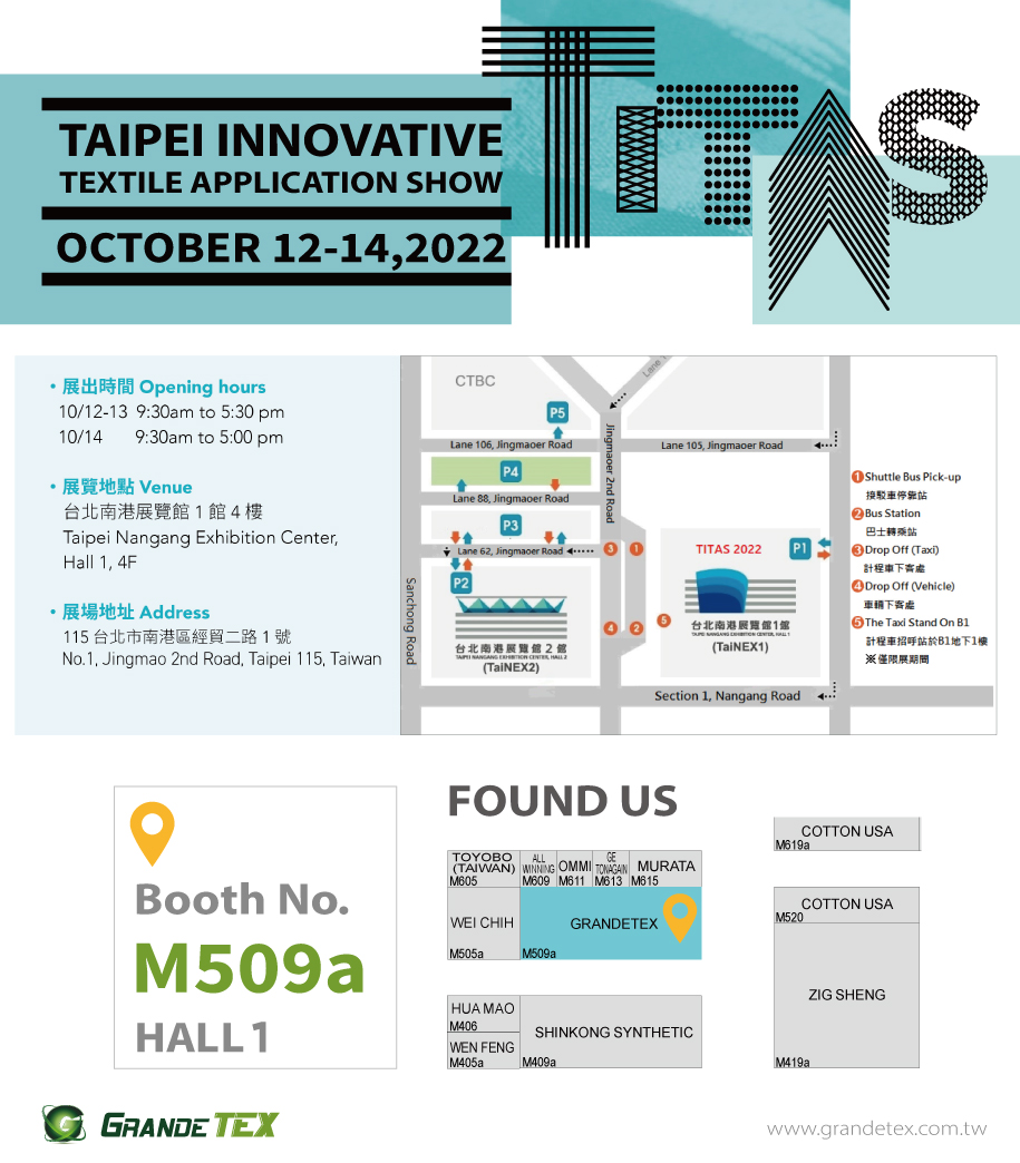 TITAS 2022 ・ Opening hours 10/12-13 9:30am to 5:30pm 10/14 9:30am to 5:00pm ・ Venue Taipei Nangang Exhibition Center, Hall 1, 4F ・ Address No.1, Jingmao 2nd Road, Taipei 115, Taiwan ・ Booth No. M509a Read More