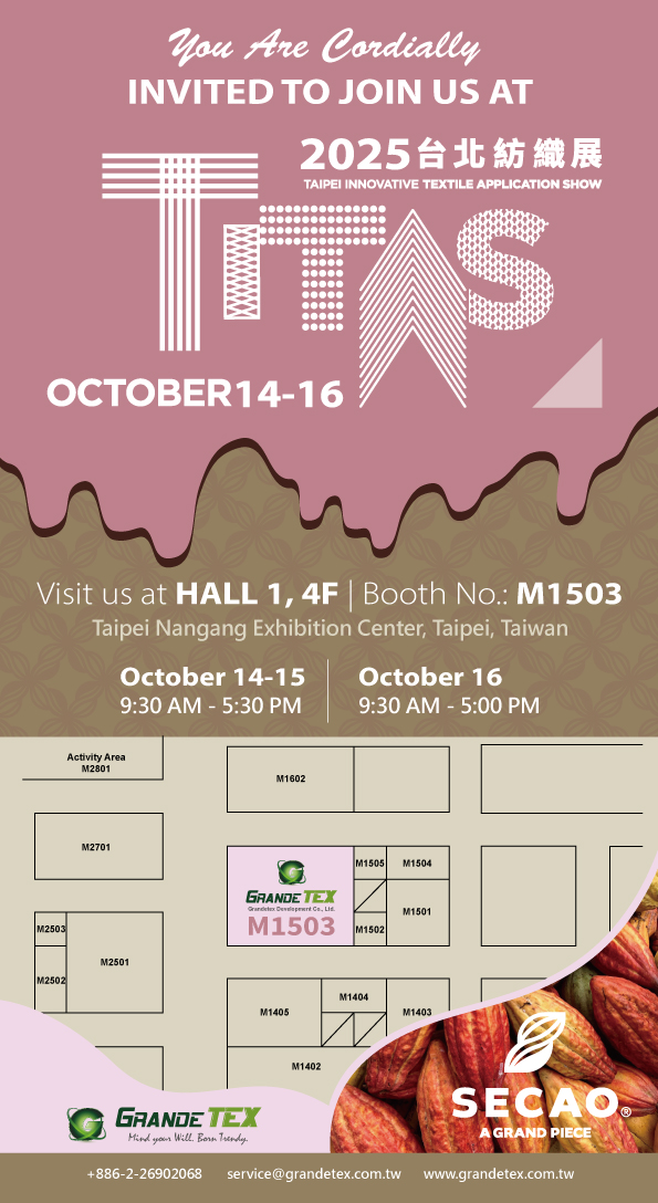 We warmly invite you to visit us at TITAS 2025 Taipei, where sustainability meets textile innovation!This year, our showcase highlights agricultural waste upcycling, carbon reduction, and eco-friendly textile solutions—designed for brands and traders seeking functional and sustainable fabrics.
