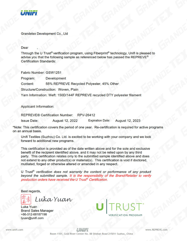REPREVE® is the trusted, branded recycled performance fiber, used to make sustainable textiles with wicking, odor control, water resistance, and more.